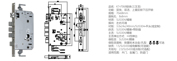 功能:雙快。雙活、上提反鎖下壓開鎖
