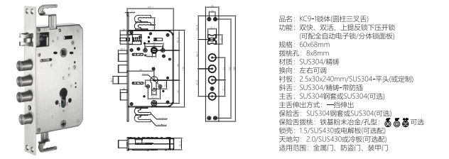 功能:雙快、雙活、上提反鎖下壓開鎖