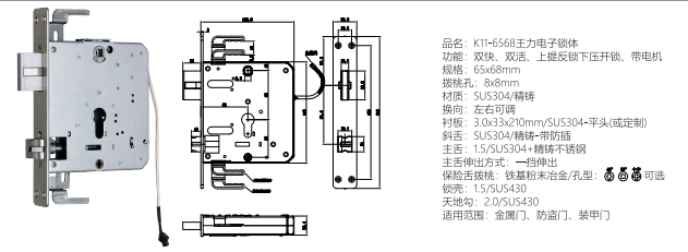 功能:雙快、雙活、上提反鎖下壓開鎖、帶電機