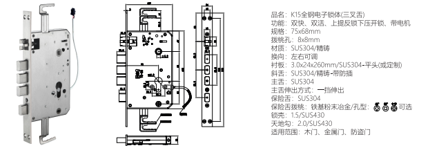 品名: K15全鋼電子鎖體(三叉舌)