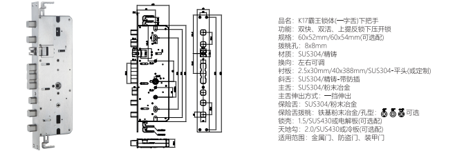 功能:雙快,雙活,上提反鎖下壓開鎖